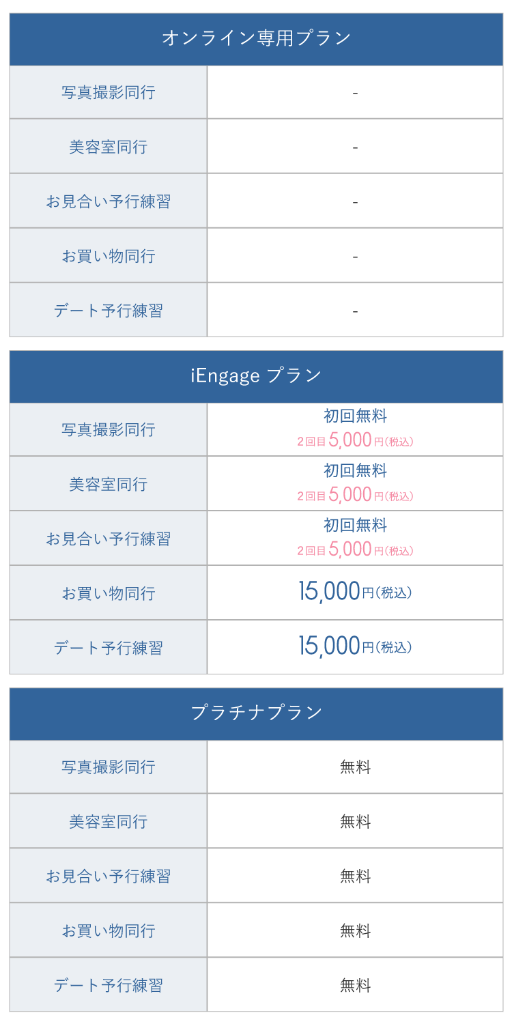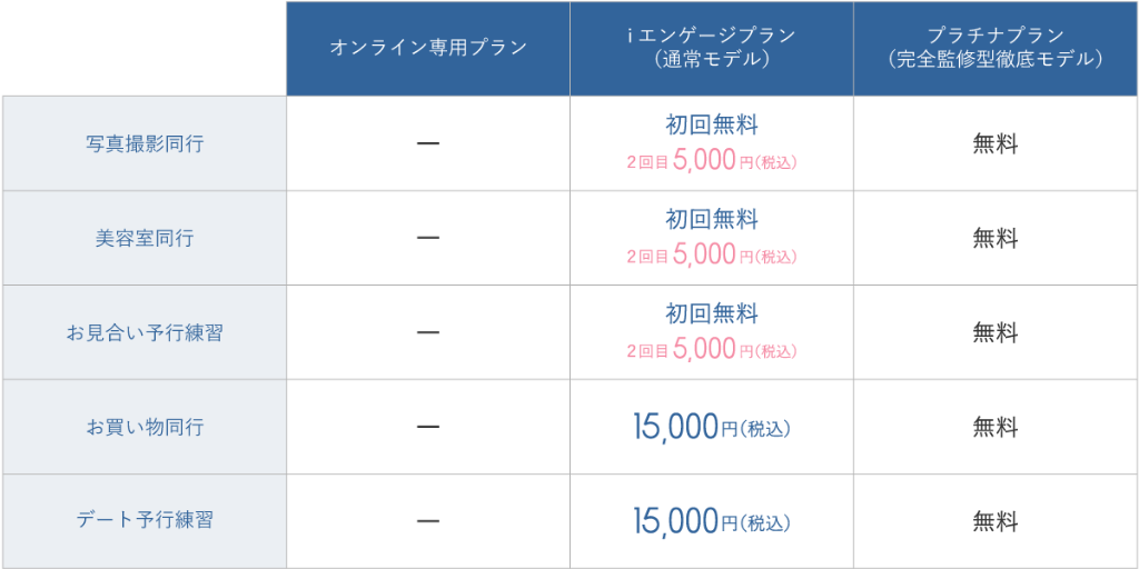 ・その他同行系サービスがオプションでご選択いただけます(買い物、美容室、デート練習、お見合い練習)